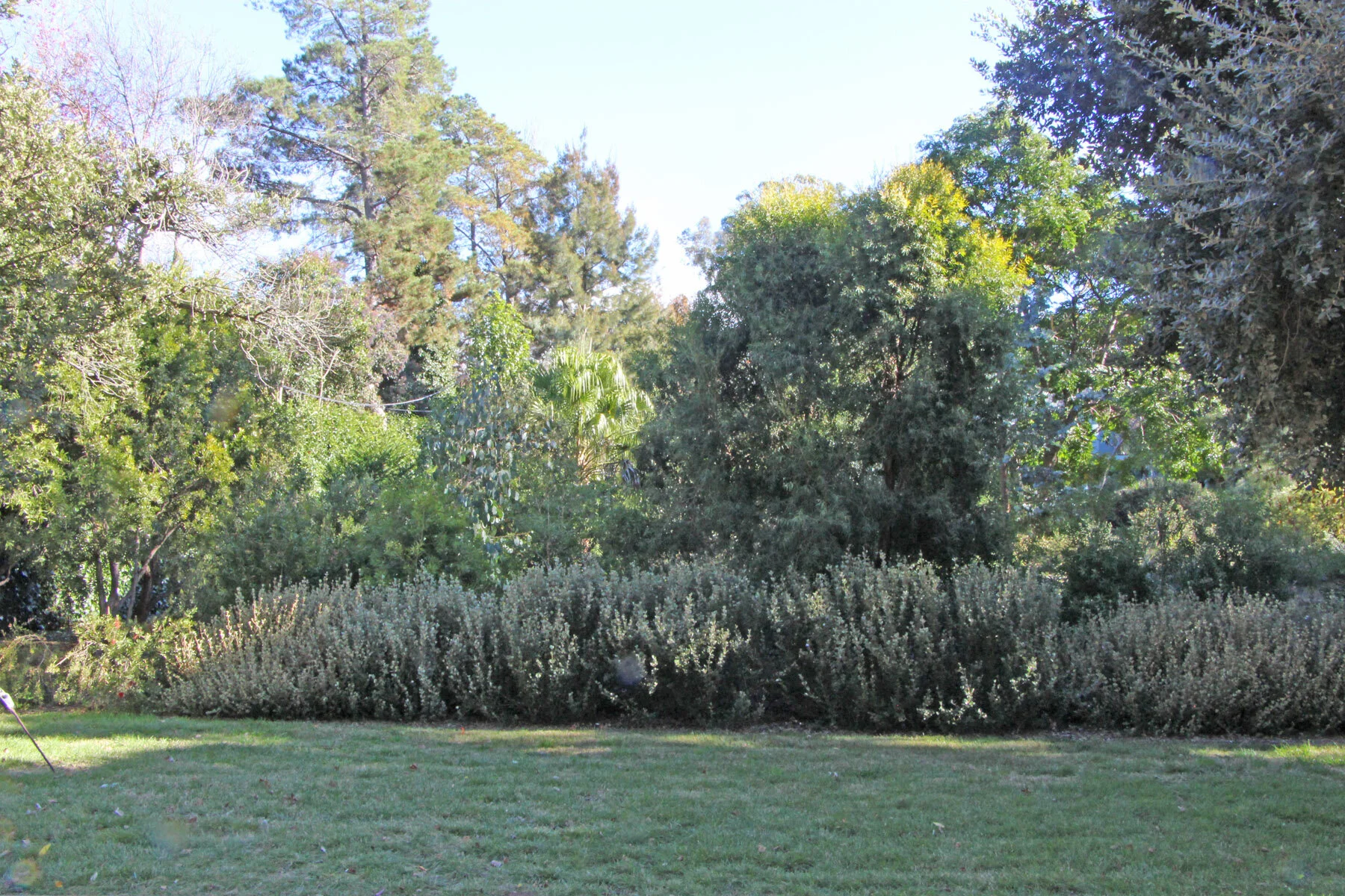 Above on the left is just after the disaster in 2016 and on the right the same area in 2021. The remaining Callistemon salignus from the front hedge (the 3 trunks in the right of the left hand picture) is visible in the right photo on the right side as a very large bush with the new C. salignus plants visible over the hedge of Correa alba planted in front. The callistemon stumps left behind the hedge have regrown into bushes and we have planted a variety of other plants, including many Grevilleas,